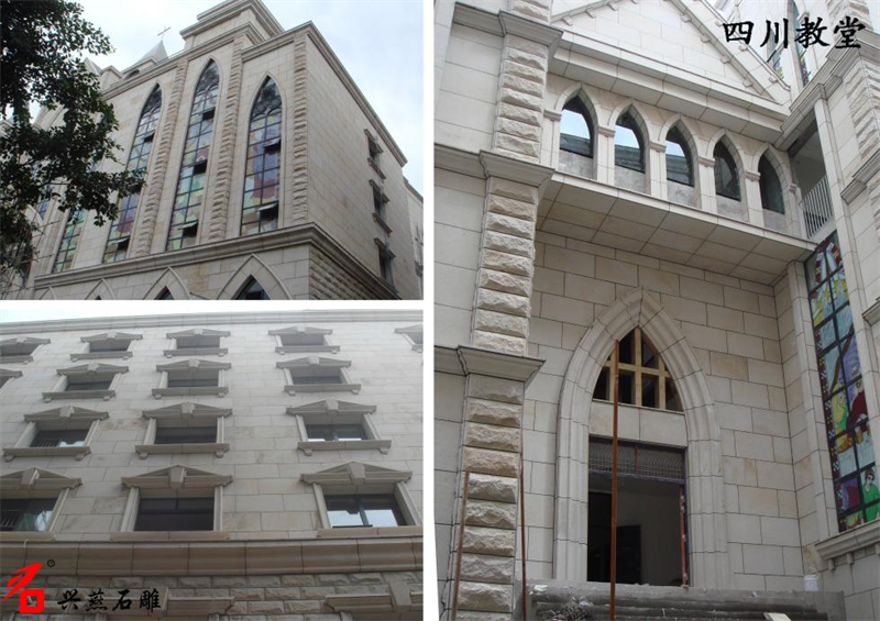 Католик шіркеуінің сыртқы қабырға жобасы, Сыягун қаласында, Сыйгань провинциясы, ол өзінің алғашқы жылдарында Fujian Xingyan Stone Products құрған Сычуань провинциясы. Осы маңызды діни және мәдени ғимараттың қатаң талаптарына қарамастан, Юннаньдегі сәулет стилін және мәдени коннотацияны терең зерттеуге, «Юньнан» сарғыш құмтасты тереңдетіп, түрлі-түсті құмтас таңдалды және «градатталған скрининг + сандық түсті сәйкестендіру» бар түсті және жылтырдың бірлігін қамтамасыз етті. Технология тұрғысынан, гуан тасты Материалдық емес мәдени мұра технологиясы және заманауи сандық бақылау технологиясы интеграцияланған және Киелі кітаптағы оқиғалар сияқты діни заңдар оюлы; Құрылыс кезінде биіктікте жұмыс істеп, зияткерлік жүк көтергіш жүйесі қолданылды және аварияның нөлдік жеткізіліміне қол жеткізді. Аяқталғаннан кейін шіркеудің сыртқы қабырғасы салтанатты және талғампаз, керемет беріктігі бар. Ол салалық марапатқа ие болды және қытай және батыс мәдениеттерінің интеграциясының архитектуралық моделіне айналды, олар мұрагерлік пен инновациялардағы xingyan тастарының терең күштерін көрсетеді.